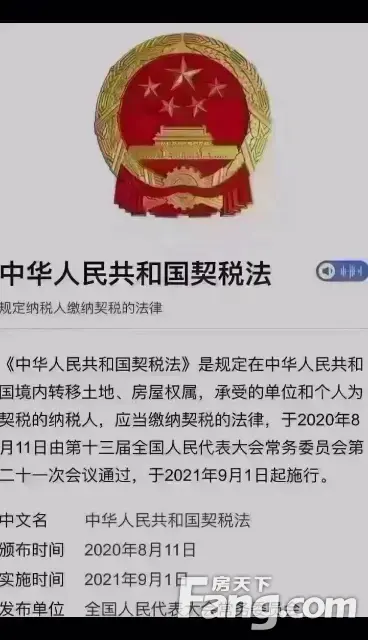 契税 今年9月1日开始 首套3% 二套5% 入手的抓紧时间了